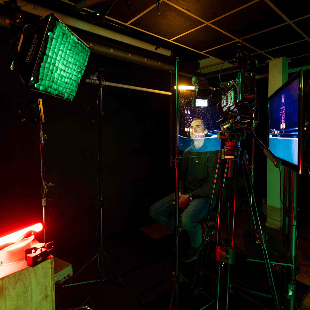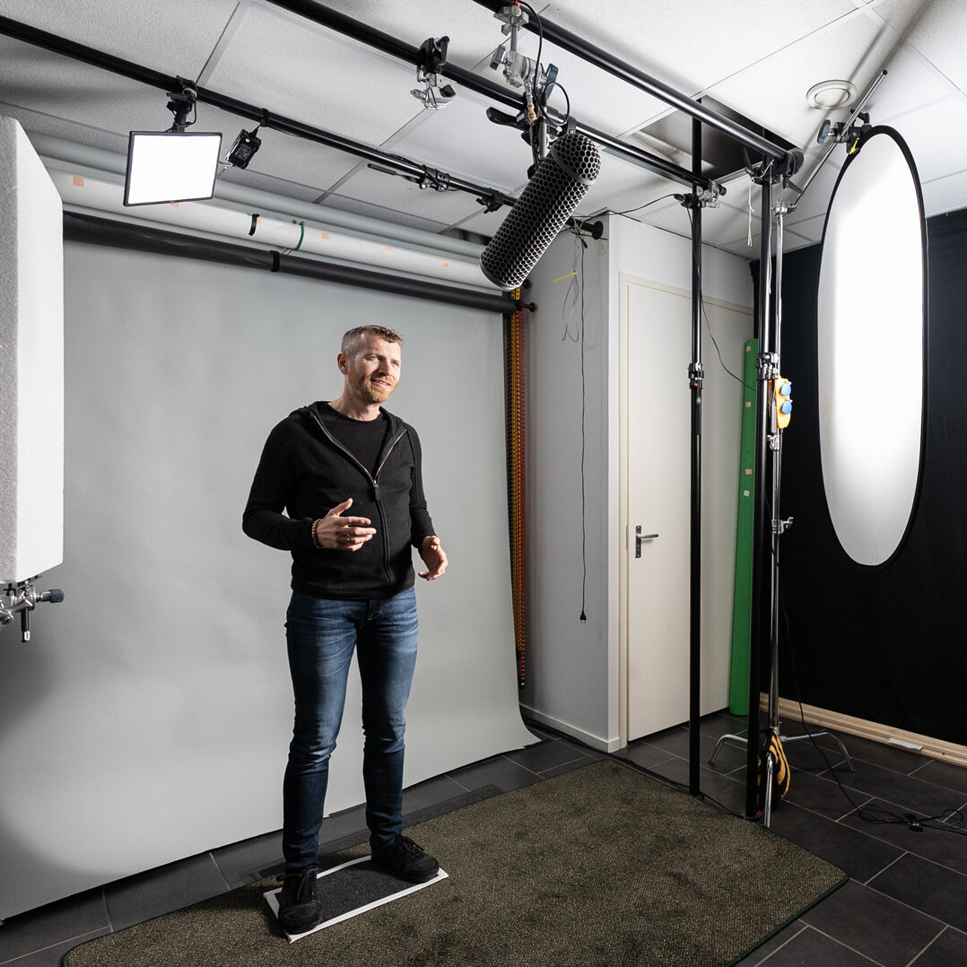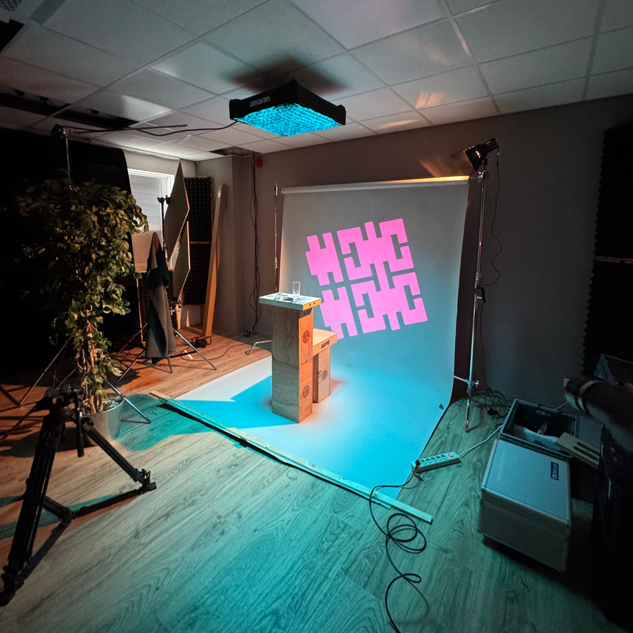Onze opnamestudio is ontworpen met flexibiliteit en functionaliteit in gedachten. De ruimte is geschikt voor uiteenlopende producties zoals interviews, presentaties, instructievideo’s en podcasts.